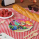 Farbenfrohe Retro Abstrakte Mohnwasserfarbe Pappteller