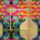Farbenfrohe Retro Abstrakte Mohnwasserfarbe Stoff