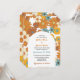 Ein wunderschönes Retro-Blume-Muster aus den 60er Jahren mit einem Bogen. Eine Vintage, minimalistische Ehering-Einladung mit groben Mustern und Retro-Farbpalette für jeden, der Groovy-Muster, Blumenkäse und Retro-Farbpaletten-Designs Lieben. Es stehen auch passende Hochzeitsstilleriedateien und andere Hochzeitsformate zur Verfügung.