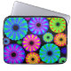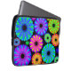 Farbenfrohe Retro-Blume-Muster auf schwarzem Hinte Laptopschutzhülle
