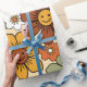Farbenfrohe Retro-Blumenmuster im 70er-Stil. Vinta Geschenkpapier
