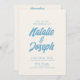 Diese Einladung ist perfekt für Ihre Hochzeit, wenn Sie nach einem einzigartigen und leicht bearbeitbaren Design suchen. Eine elegante, einfache minimalistisch cremeblaue Hochzeitsvorlage doppelseitig in einer Hochzeitseinladung. Das ist ein schlichter weißer Hintergrund. Und blauer, kühner 70er Braut und Bräutigam Vornamen. und bearbeitbare Informationen. Und auf der Rückseite got du ganze Hochzeitsdetails als Hotel, Empfang, UAWG und Hochzeitswebsite. Erschwinglich und es ist auch digitale elektronische E-Einladung, wenn Sie gewollt, es per Text oder E-Mail zu senden. Alle Informationen können durch Anklicken des Buttons Personalisieren angepasst werden. So packen Sie es und machen Sie es zu Ihrem, sodass Sie verlobt und aufgeregt einladen .