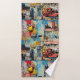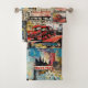 Farbenfrohe Retro-Junk-Reiseroute-Collage Badhandtuch Set