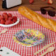 Farbenfrohe Retro Psychedelic Kaleidoskop Abstrakt Pappteller