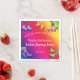 Skaten-Geburtstagsnapkins mit farbenfrohen Retrorollen, einem kühlen Regenbogen-Hintergrund, einer Auswahl an Roller-Skaten und lebhaften Strümpfen, das coole Sprichwort "Lass the good times roll", Name, Alter und Datum der Feier.