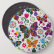 Farbenfrohe Retro-Schmetterlinge und Blume-Muster Button