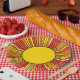 Farbenfrohe Retro-Sonnenscheinpapier-Platte. Vielseitiges und einfaches Design, feiern Sie mit uns. Ein lebendiges und fröhliches Design einer großen Sonne mit blühenden Sonnenstrahlen. Diese farbenfrohe Sonne ist auf dem Teller zentriert und strahlt bis an die Kanten. Dieses Design ist geschlechtsneutral und zeitneutral und eignet sich für viele Gelegenheiten. Sehen Sie andere Geburtstagszubehör mit dem gleichen Thema und Mix und Spiel.