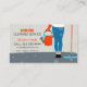 Die Reinigungsservice-Visitenkarte ist in einem farbenfrohen Retro-Ambiente gestaltet. Beste kommerzielle oder wohnliche Dienstleistungen für Reinigung, Hausmeister und Zimmermädchen. Der gesamte Text ist leicht personalisiert.