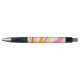 Farbenfrohe Retro-Vibes abstrakte Illustration mit strahlenden rosa, lila, braunen, beigen, gelben und orangefarbenen Wavy-Strahlen auf pastellfarbenem Hintergrund