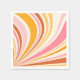 Farbenfrohe Retro-Vibes abstrakte Illustration mit strahlenden rosa, lila, braunen, beigen, gelben und orangefarbenen Wavy-Strahlen auf pastellfarbenem Hintergrund