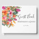 Dieses tropische Hochzeitsdesign ist ideal für Paare, die einen Sommer, einen Strand oder eine Hochzeit in Urlaubsort planen. Das Gästebuch besticht durch ein wunderschönes und lebendiges Aquarellbild mit tropischen Blume in Rosa und Orange, die an ein herrliches Inselparadies erinnern.