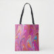 Diese Tasche hat ein helles und buntes Muster, das zu singen scheint! Es zeichnet sich durch ein abstraktes, künstlerisches, wirbelvolles Muster in Rosa, Orange und Blau aus. Kühne und schön! Beide Seiten der Tasche haben das gleiche Bild.