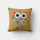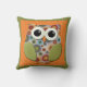 Orangefarbenes und grünes Kissen mit einer niedlichen und farbenfrohen, roten, blauen, grünen, lila, orangefarbenen und weißen Blumen-Eule.