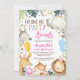 Farbenfrohe Rufen Alle Party Tiere Safari Geburtstag Einladung farbenfrohe Safari Geburtstagseinladung mit fünf niedlichen Dschungeltieren und drei bunten Ballons. Diese Aufforderung an alle Party zum Geburtstag bietet auch einige rosa Party Hüte, Grün, Sterne und ein Gepard Pint Muster.