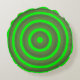 Individuell anpassbares, buntes Rundkissen mit kreisförmigem Design aus verschiedenen farbigen konzentrischen Kreisen auf der Vorder- und Rückseite des Kissens.
