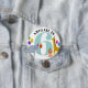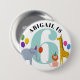 Dieser farbenfrohe und helle Geburtstagsknopf enthält individuelle Name, der ankündigt, wer Geburtstag hat, und eine große blaue Zahl sagt das neue Alter des Kindes. Party bereit afrikanische Tiere, ein Elefant, Giraffe und Löwe sind alle bereit, mit Ballons und Party Hüten zu feiern.
