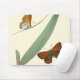 Farbenfrohe Schmetterlinge flattern um ein Blatt Mousepad