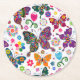 Farbenfrohe Schmetterlinge und Blume Muster Runder Pappuntersetzer