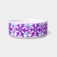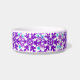 Niedliche Haustierfutterschale mit einer Auswahl an bunten Schneeflocken in dunkelblau, türkis und lila. Eine helle und fröhliche Schüssel für Haustiere mit Kunst, die von einem Künstler in Kansas entworfen wurde.