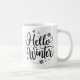 Elegante Schrift Weihnachtskaffee Tasse. Das Design enthält den Text "Hello Winter" in schwarzer Typografie mit bunten Schneeflocken und Sternelementen. Macht das personalisiertste Geschenk für sich selbst, Ihre Freunde, Familienmitglieder und sogar Nachbarn. Wir haben mehr als 35 Weihnachtskaffeemassen in unserer Sammlung, dass Sie definitiv Liebe. Bitte Karo es raus und bekommst das beste Weihnachtsgeschenk mit besonderen Wünschen für Ihre speziellen Leute. Frohe Weihnachten!