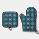 Farbenfrohe Schneeflocken in Dunkelblau Ofenhandschuh & Topflappen-Set