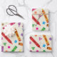 Farbenfrohe Schulkrabbe mit Formen Muster Geschenkpapier Set