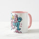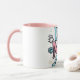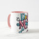 Dieses lustige und spielerische Tasse-Design enthält die Worte "Hunde-Mama", geschrieben in einem lebendigen, wirbelnden Drehbuch mit einer Mischung aus rosa, blau und gelb Schriftzeichen, in Schwarz dargestellt. Die Tasse ist spielerisch mit farbenfrohen Pfotendrucken in Blau- und Weißtönen dekoriert, und niedliche Knochenbilder in Rosa und Blau verstreut um den Text auf einem hellgrauen Hintergrund. Dieses Tasse-Design feiert die liebevolle Bindung zwischen einer Hundebüt und ihren wütenden Freunden und macht es zu einem fröhlichen Muttergeschenk und einer wunderbaren Tasse für jeden stolzen Hundemama.