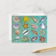 Sechzehn handgezeichnete Muscheln auf einem brillanten Hintergrund sorgen für eine lustige Postkarte, um jemandem das Leben zu erleichtern.