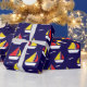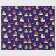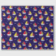 Farbenfrohe nautische Geschenkpackung gemustert mit roten und gelben Segelbooten auf dem Ozean