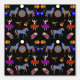 Diese Sinti und Roma Volkskunst beinhaltet Tiere, Musikinstrumente und Tänzer in kräftigen Farben auf schwarz. Teil der Sinti und Roma Lore Kollektion von cheriedesues_studio.