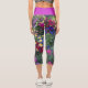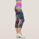 Hoch taillige, dehnbare Capri-Leggings, die ein vollflächiges Printdesign eines bunten Sommergarten aufweisen. Ein schönes, blumengeschmücktes Design! Die Farbe der Taille ist hell rosa. Sie können die Taillenfläche nach Ihren Wünschen anpassen. Wählen Sie die Größe Ihrer Leggings.