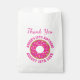 Farbenfrohe Sprinkler auf Geburtstagsparty Gunst Taschen. Fun Vorlage mit rosa Donuts zeichnend. Fröhliches Design für Kinderfeiern.