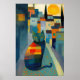 Farbenfrohe Stadt mit charakteristischer Katze Poster