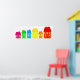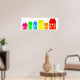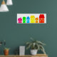 Niedliche Abbildung einer Häusergruppe in verschiedenen Farben und Größen, stehend in einer Reihe. Bilder auf verschiedenen Geschenken und Produkten erhältlich.