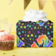 Dieses aufregende, lustige und lebendige Verpackungspapier-Design zeichnet sich durch ein farbenfrohes Sternenmuster aus, zusammen mit der Zahl "12" mit einem bunten Regenbogen-inspirierten Farbverlaufsmuster auf schwarzem Hintergrund. Papier wie dieses zu umhüllen, könnte eine lustige Art sein, Geschenke oder Geschenke für jemanden zu verpacken, der zum zwölften Geburtstag, zum zwölften Hochzeitstag oder zu einem anderen 12. Ereignis kommt. [~Z0000345]