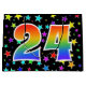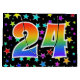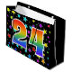 Dieses aufregende, lustige und lebendige Geschenktütendesign zeichnet sich durch ein farbenfrohes Sternenmuster aus, zusammen mit der Zahl "24" mit einem farbenfrohen Regenbogen-inspirierten Farbverlauf auf schwarzem Hintergrund. Eine Geschenktasche wie diese könnte vielleicht eine lustige und glückliche Art sein, Geschenke oder Geschenke für jemanden zu verpacken vierundzwanzig Geburtstag, oder vielleicht für ein Paar vierundzwanzig Hochzeitstag, oder ein anderes 24. Ereignis. [~Z0000347]