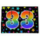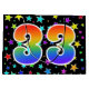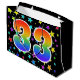 Dieses aufregende, lustige und lebendige Geschenktütendesign besticht durch zahlreiche farbenprächtige Sternenformen und die Zahl "33" mit einem farbenfrohen Regenbogen-inspirierten Farbverlaufsmuster auf schwarzem Hintergrund. Eine Geschenktasche wie diese könnte vielleicht eine lustige Möglichkeit sein, Geschenke oder Geschenke für jemanden zu verpacken, der zum dreißigsten Geburtstag, oder vielleicht für ein Paar zum dreißigsten Hochzeitstag, oder für ein anderes 33. Ereignis. [~Z0000347]