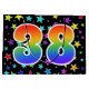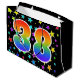 Dieses aufregende, lustige und lebendige Geschenktütendesign zeichnet sich durch ein farbenprächtiges Sternfeld-inspiriert Muster aus, zusammen mit der Zahl "38" mit einem farbenfrohen Regenbogenspektrum wie Farbverlaufsmuster auf schwarzem Hintergrund. Eine Geschenktasche wie diese kann eine lustige, glückliche Art sein, Geschenke zu verpacken oder Geschenke für jemanden zu geben achtunddreißig Geburtstag, oder vielleicht für ein Ehepaar achtunddreißig Hochzeitstag, oder ein anderes 38. Ereignis. [~Z0000347]