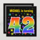 Dieses lustige, lebendige und aufregende Geburtstagsfeier-Einladungs-Design zeichnet sich durch ein farbenprächtiges, inspiriertes Sternenmuster aus, zusammen mit der Zahl "42" mit einem farbenfrohen Regenbogen-inspiriert Spektrum oder Gradientenmuster. Der Name auf der Vorderseite kann angepasst werden. Auf der Rückseite finden Sie benutzerdefinierte Informationen zum Party. Geburtstagsfeierlichkeiten wie diese können genutzt werden, um Gäste zu einer Geburtstagsparty einzuladen, die zum Feiern des zweiundvierzigsten Geburtstages von jemandem veranstaltet wird. [~Z0000349]