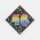 Dieses aufregende, lustige und lebendige Papier-Serviette-Design zeichnet sich durch ein farbenfrohes Muster von Sternformen aus, zusammen mit der Zahl "46" mit einem bunten Regenbogenspektrum wie Farbverlaufsmuster auf schwarzem Hintergrund. Papierservietten wie diese können bei einem Party zum sechzigsten Geburtstag von jemandem oder vielleicht zum sechsundvierzigsten Hochzeitstag eines Paares oder einem anderen 46. [~Z0000346]
