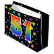 Dieses aufregende, lustige und lebendige Geschenktütendesign besticht durch zahlreiche farbenprächtige Sternenformen und die Zahl "51" mit einem farbenfrohen Regenbogen-inspirierten Farbverlaufsmuster auf schwarzem Hintergrund. Eine Geschenktasche wie diese kann eine lustige, glückliche Art sein, Geschenke zu verpacken oder Geschenke zu geben für jemanden zum 51. Geburtstag, oder vielleicht für ein Paar zum 50. ersten Hochzeitstag, oder ein anderes 51. Ereignis. [~Z0000347]