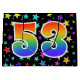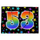 Dieses aufregende, lustige und lebendige Geschenktütendesign zeichnet sich durch ein farbenfrohes Sternmuster aus, zusammen mit der Zahl "53" mit einem farbenfrohen Regenbogen-inspirierten Farbverlaufsmuster auf schwarzem Hintergrund. Eine Geschenktasche wie diese kann eine lustige, glückliche Art sein, Geschenke zu verpacken oder Geschenke für jemanden zu geben 53. Geburtstag, oder vielleicht für ein Paar von 53. Hochzeit Jahrestag, oder ein anderes 53. Ereignis. [~Z0000347]