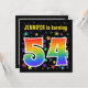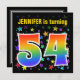 Dieses lustige, aufregende und lebendige Geburtstagsfeierdesign zeichnet sich durch ein farbenfrohes Sternenmuster aus, zusammen mit der Zahl "54" mit einem farbenfrohen Regenbogenmuster wie Spektrum oder Farbverlauf. Der Name auf der Vorderseite kann personalisiert sein. Auf der Rückseite finden Sie benutzerdefinierte Informationen zum Party. Einladungen zu Geburtstagsfeiern wie diese können potenziellen Teilnehmern für eine Geburtstagsparty geschickt werden, die zum Feiern des vierundfünfzigsten Geburtstages von jemandem abgehalten wird. [~Z0000349]