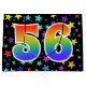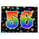 Dieses aufregende, lustige und lebendige Geschenktütendesign zeichnet sich durch ein farbenfrohes Sternmuster aus, zusammen mit der Zahl "56" mit einem farbenfrohen Regenbogenspektrum wie Farbverlaufsmuster auf schwarzem Hintergrund. Eine Geschenktasche wie diese könnte vielleicht eine lustige und glückliche Art sein, Geschenke oder Geschenke für jemanden zu verpacken, der zum sechsundfünfzigsten Geburtstag, oder vielleicht für ein Paar zum sechsundfünfzigsten Hochzeitstag, oder für ein anderes 56. Ereignis. [~Z0000347]