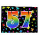 Dieses aufregende, lustige und lebendige Geschenktütendesign zeichnet sich durch ein buntes Sternenfeld-Muster aus, zusammen mit der Zahl "57" mit einem bunten Regenbogenspektrum wie Farbverlaufsmuster auf schwarzem Hintergrund. Eine Geschenktasche wie diese könnte vielleicht eine lustige und fröhliche Art sein, Geschenke oder Geschenke für jemanden zu verpacken, der zum 57. Geburtstag, oder vielleicht für ein Paar zum 57. Hochzeitstag, oder ein anderes 57. Ereignis. [~Z0000347]