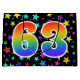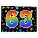 Dieses aufregende, lustige und lebendige Geschenktütendesign zeichnet sich durch ein buntes Sternenfeld-Muster aus, zusammen mit der Zahl "63" mit einem bunten Regenbogenspektrum wie Farbverlaufsmuster auf schwarzem Hintergrund. Eine Geschenktasche wie diese kann eine lustige, glückliche Art sein, Geschenke zu verpacken oder Geschenke zu geben für jemanden zum dreiundsechzigsten Geburtstag, oder vielleicht für ein Paar zum dreiundsechzigsten Hochzeitstag, oder irgendein anderes 63. Ereignis. [~Z0000347]