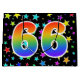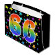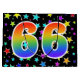 Dieses aufregende, lustige und lebendige Geschenktütendesign zeichnet sich durch ein farbenfrohes Sternmuster aus, zusammen mit der Zahl "66" mit einem farbenfrohen Regenbogen-inspirierten Farbverlaufsmuster auf schwarzem Hintergrund. Eine Geschenktasche wie diese könnte vielleicht eine lustige Art sein, Geschenke oder Geschenke für jemanden zu packen, der sechzigsten Geburtstag, oder vielleicht für ein Paar sechzigste Hochzeit oder ein anderes 66. Ereignis. [~Z0000347]