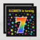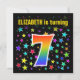 Farbenfrohe Sterne + Regenbogenmuster "7" Geburtst Einladung