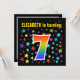 Dieses lustige, aufregende und lebendige Geburtstagsfeierdesign zeichnet sich durch ein farbenfrohes Sternenmuster aus, zusammen mit der Zahl "7" mit einem farbenfrohen Regenbogenmuster wie Spektrum oder Farbverlauf. Der Name auf der Vorderseite kann personalisiert sein. Auf der Rückseite finden Sie personalisierte Details zum Party. Einladungen zu Geburtstagsfeiern wie diese können potenziellen Teilnehmern zu einer Geburtstagsparty geschickt werden, die zum siebten Geburtstag von jemandem gefeiert wird. [~Z0000349]