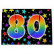 Farbenfrohe Sterne + Regenbogenmuster "80" Event # Große Geschenktüte